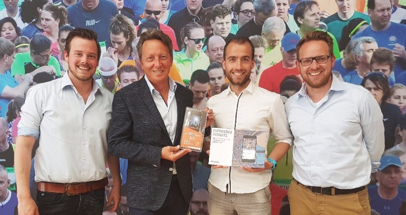 CEO Mario Kadiks and Marketing communications manager Tom Hak received the first copy of Experience Insights together with an achievement award for their NN Marathon Rotterdam EventApp. This year’s edition resulted in over 100,000 App downloads and record breaking user statistics. How this can be achieved and more, can be read in our whitepaper Experience Insights.
